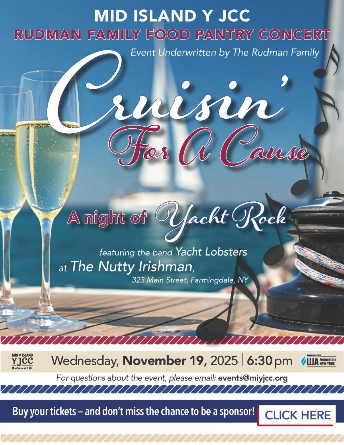 Love Yacht Rock? Make waves for a great cause! 🎶 Join us this November for the 3rd Annual Benefit Concert for The Rudman Family Food Pantry, and enjoy a night of laid-back grooves and mellow vibes with the Yacht Lobsters at The Nutty Irishman! Thanks to your participation, the Rudman Family Food Pantry can provide meals to families, seniors, and Holocaust Survivors, ensuring no one goes hungry on Long Island.